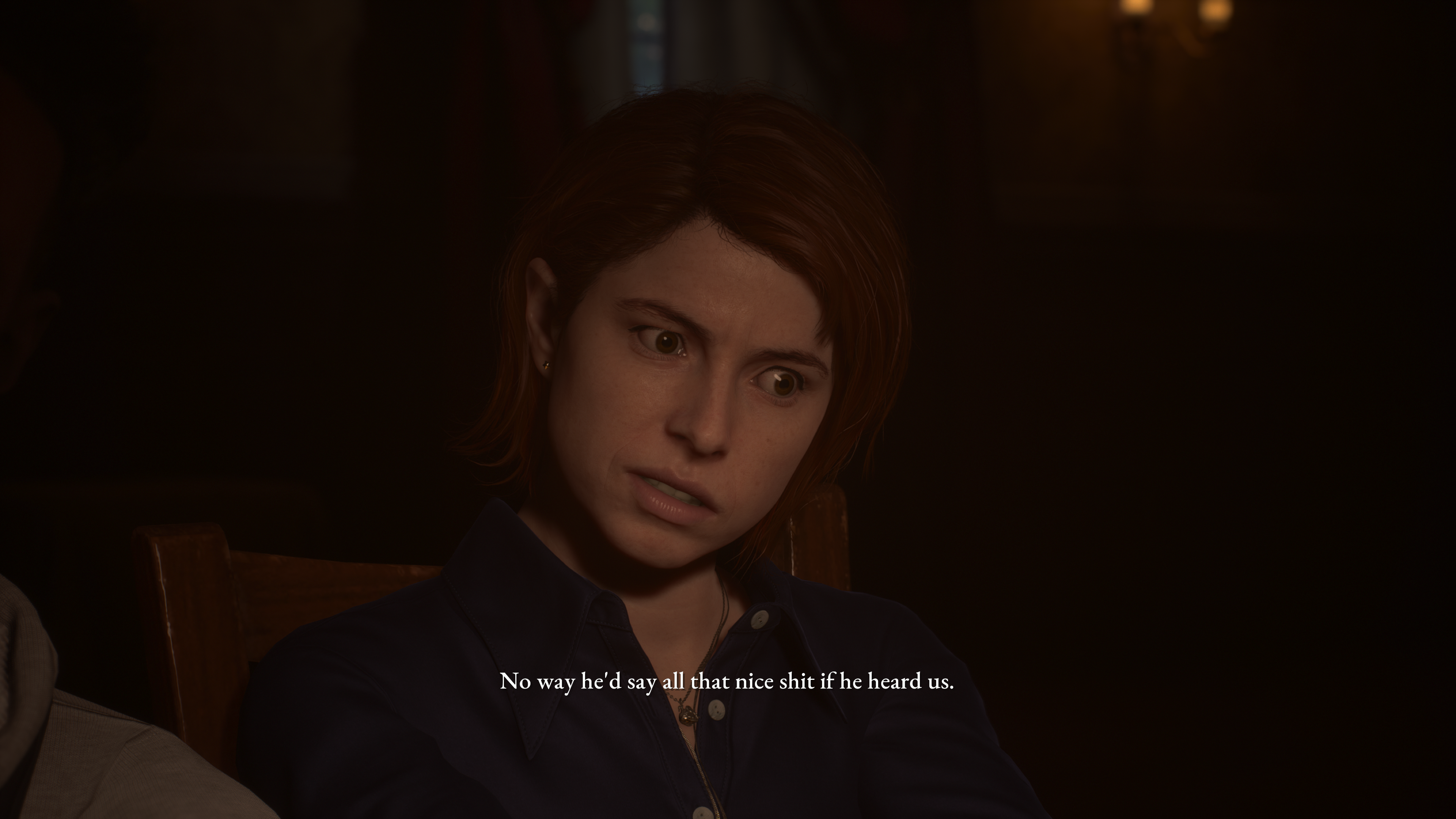 The Devil in Me, unfortunately, is a major step down in performance and graphics when compared to the previous entries. This is immediately noticeable once the opening cinematic starts playing and the compression on the video feels like someone left it sitting at a comfortable 240p. It’s not as unplayable feeling like Man of Medan, which had some performance issues causing certain prompts to not work, but it is riddled with pop-ins, inaccurate subtitles, missing sound effects, glaring continuity errors and characters zipping in and out of frame between shots. It’s incredibly distracting when you have a discussion about your own survival when Mark needs to be loaded into the frame from default pose whenever the camera decides to cut to any shot involving him. With The Dark Pictures it’s somewhat normal for characters to be overly animated as they wave their arms around and bob their heads in exaggerated ways to indicate emotions, but I can count on one hand the moments I felt like someone actually looked at the character they were speaking to. Most of the time characters default to a sort of downward diagonal angle as they violently shake around as if the floorboards just made a very offensive joke. The animation feels somewhat jarring and it detracts from what are supposed to be big death scenes. Sadly, I’m not the only one as multiple people report experiencing problems across all versions, with the co-op causing even more problems. Thankfully I mostly experienced some harmless things like the aforementioned pop-ins and Mark A-posing into position during serious relationship talk, and one moment when Charlie was hiding in a cooling box with his lighter on, clearly visible from the killer’s perspective.