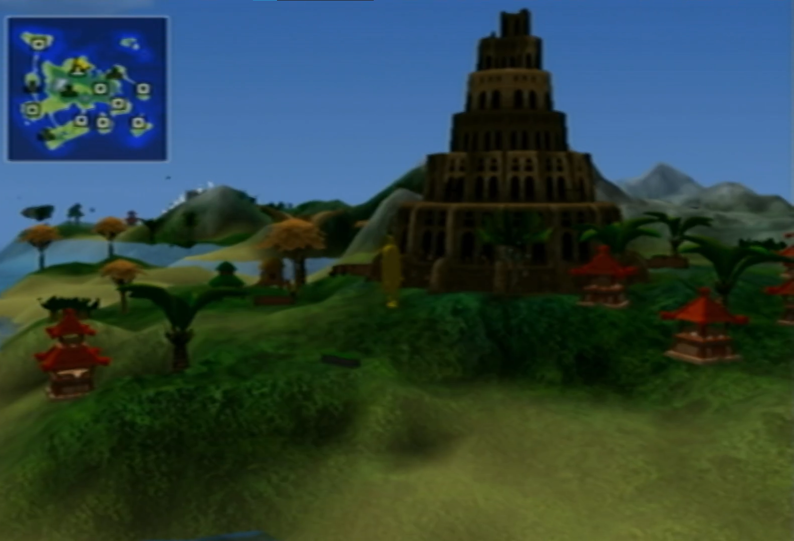 It was a long struggle, but in the end the people of the island of Barudo took matters into their own thematic hands, and started construction of the mother of all monuments: The Tower of Babel. In true Babylonian fashion, however, this proves to be a mistake of biblical proportions as upon completion of the tower, the island collapses under its weight, nearly causing the entire population to be destroyed.