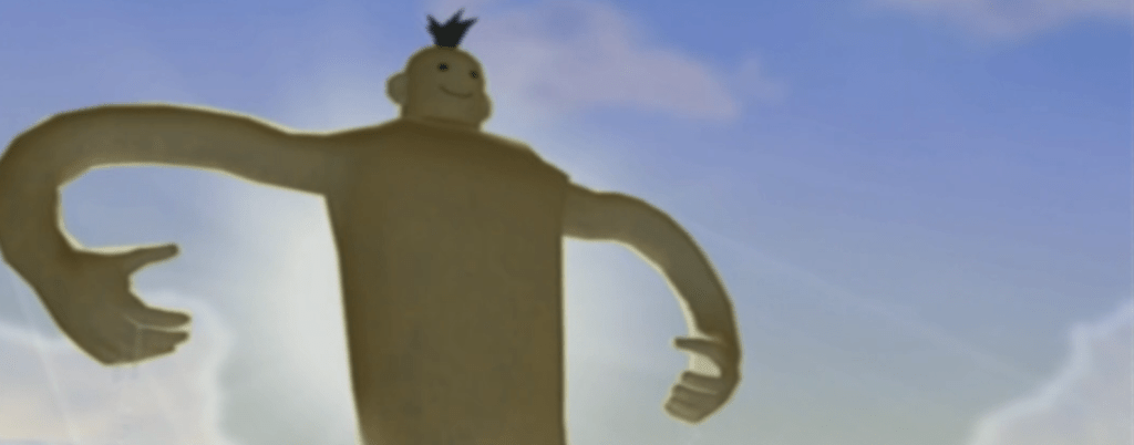 Imagine a time about 20 years ago, visiting your local game store, and amidst the collection of the now titans like Animal Crossing, Metroid Prime and Super Mario Sunshine you’d find a face staring back at you; The figure smiles, its immense arms holding up a logo which says: Doshin the Giant. I’ve always been drawn to games with unique and out of place covers, it made me curious to see what kind of worlds of wonder lay within the plastic cases. Unfortunately I didn’t own a GameCube at the time, as I was still largely absorbed by the PlayStation 2 and devouring Golden Sun on my Gameboy Advance. Even so, my curiosity to that mysterious yellow giant happily holding up that logo was etched into the back of my mind, until I got the chance to play it at a friend’s house a year or so later. And it was every bit as surreal as I’d imagine it being, back when I first saw the cover. I have a lot of fond memories of sitting there with a cup of hot coco (it was one of those rare snowed-in winters), and simply walking around in the game and just doing stuff. Fast forward about a decade and a half, and I encounter that now not-so mysterious, but still mysterious, cover at a flea market and immediately picked it up, only for it to vanish onto a shelf for a good while… Until recently!