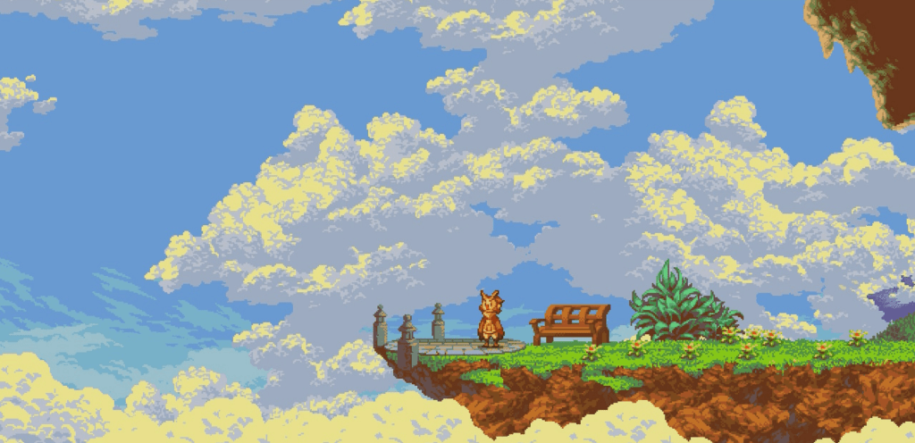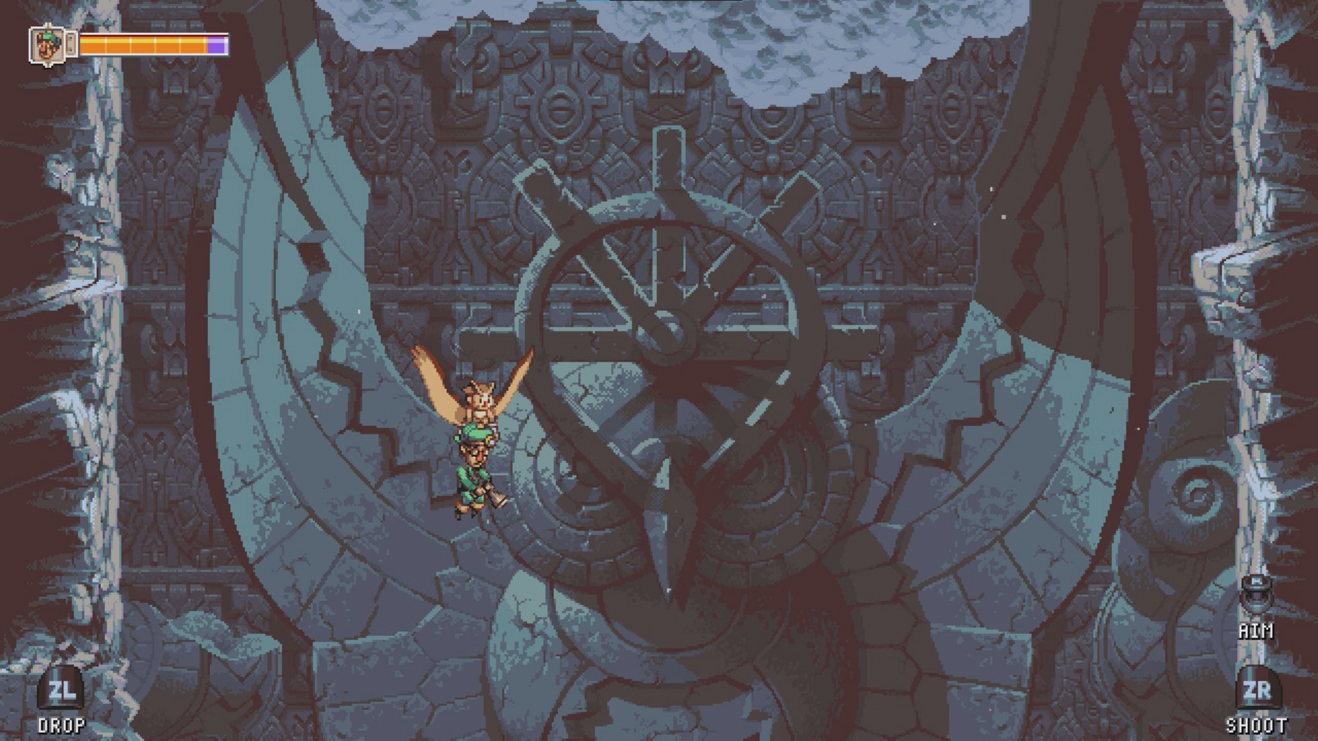 The worldbuilding in Owlboy is fantastic, it does that thing where it drip feeds you bits of lore about ancient civilizations and terrifying weapons, and then paints the rest of the picture through backgrounds and world interaction. It compliments the themes of exploration and freedom incredibly well, and it feels rewarding to peel back small layers at a time, rather than getting constant streams of information dumped on us. I’m a big fan of this style of worldbuilding and character writing. It makes the world I’m interacting with feel alive with history and makes me care about the characters I talk to. I frequently caught myself calling on of the gunners to Otus‘ side just to have them as company. I simply enjoyed having them around. All of this is backed up beautifully by the fantastic artwork done by Simon Andersen and wonderfully complimented by the musical scores of Jonathan Geer. The main theme has been stuck in my head for well over a month now and I don’t think it’s going away any time soon. Owlboy is a beautiful game to explore that oozes the passion and drive that D-Pad Studios poured into it. Over the long course of its development it ended up becoming a vibrant gem that feels like you’re experiencing the journey of the dev team alongside them.