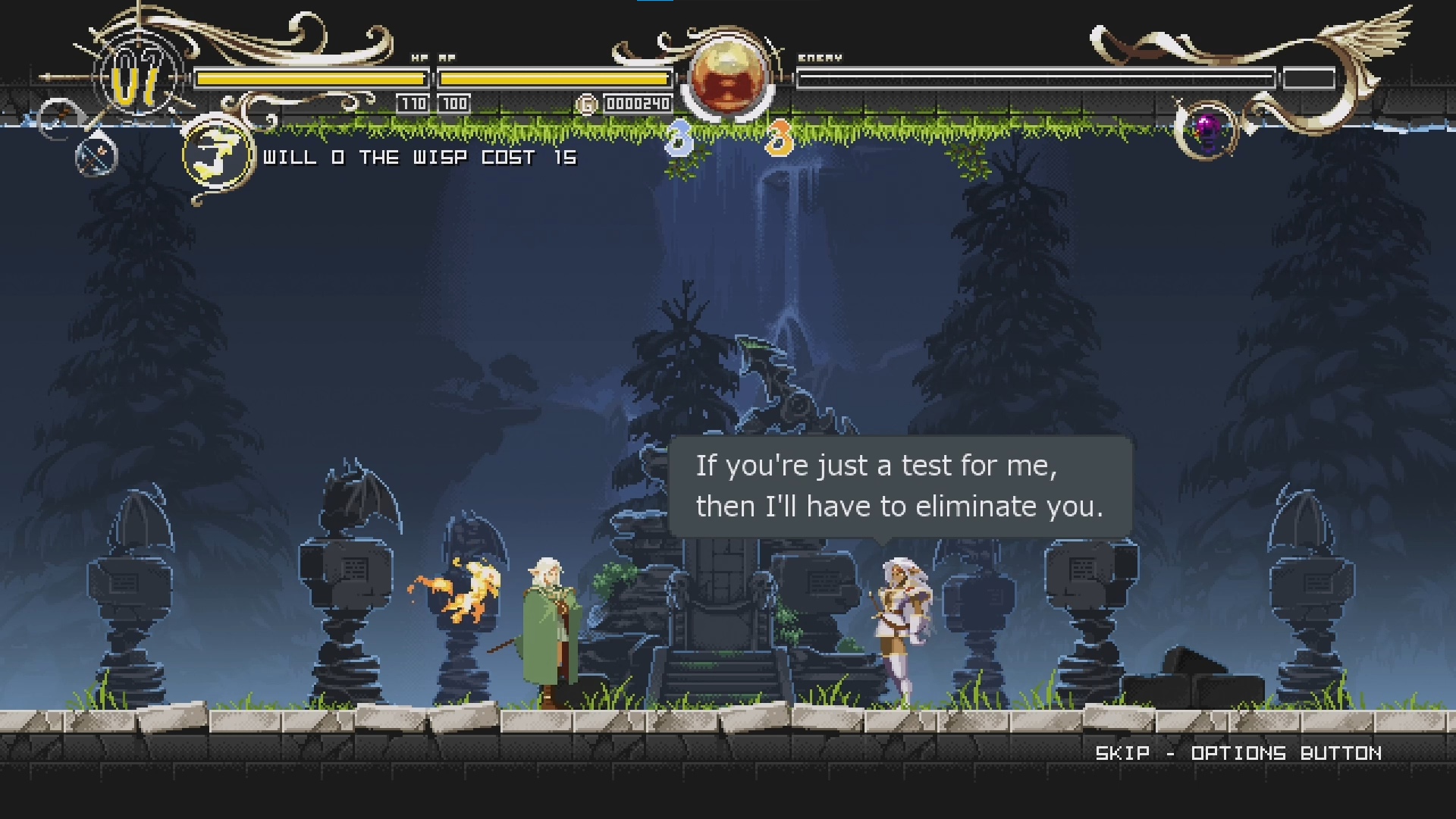 Record of Lodoss War: Deedlit in Wonder Labyrinth is a wonderful bite-sized metroidvania that hits the perfect balance between comfortable exploration and challenging boss fights. There’s never a severe punishment for dying outside of spawning back at the many save points littered throughout the land. This provides a comfortable experience when exploring, urging you to take more risky paths and experiment with move combinations, rather than feel restrictive when it comes to the risk and reward. It is a mesmerizingly beautiful game to look at with some gorgeous sprites that are insanely well animated. This is all accompanied by a surprisingly fitting soundtrack that immediately transports you back to the OVA and makes it a real feast for the senses. While it is not a long game, it does its best to explore the themes of loss and regret as best as it can, though it does often favors cryptic exposition over dealing with the subject at hand. The story only takes the real center stage near the end of the game and leaves you, literally, chasing ghosts for the majority of it. Despite this it manages to convey the story well enough so that the player can get some narrative closure. Deedlit in Wonder Labyrinth is an utterly fantastic game, with smooth controls, fun exploration, challenging fights and an interesting premise to delve into. It doesn’t stick around for more than it needs to, yet leaves a deep impression in its wake. The tabletop influences are constantly present through little things like having the stage number be a dice roll. Despite experiencing a nearly two decade long drought for new entries of one of my favorite fantasy franchises that left me starved for more, Deedlit in Wonder Labyrinth presents itself as a three star, five course meal. Absolutely delicious!