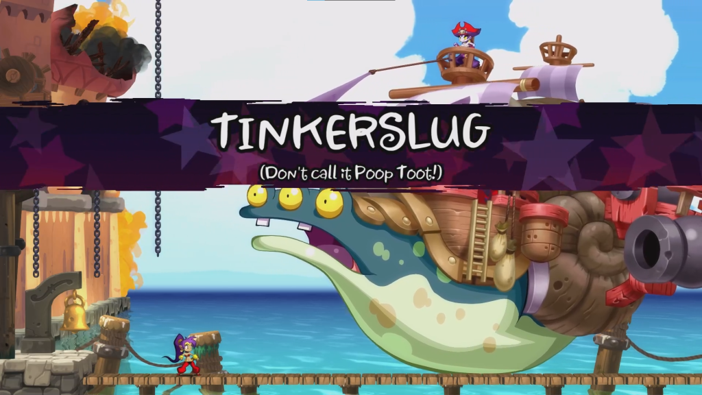 Shantae: Half-Genie Hero continues the adventures of the titular Shantae as she’s awoken one day by a mysterious voice, which guides her to a hidden basement underneath her uncle’s workshop. The voice warns her of a looming danger that will threaten the Genie Realm if not stopped. The next morning Shantae wakes up, thinking it was all a dream, and goes to visit Uncle Mimic to see a new invention he’s been working on, the Dynamo. The Dynamo is a device that is supposed to help protect and provide power to Scuttle Town. However, before the elevator pitch is over, the town is put under siege by the pirate Risky Boots and her Tinkerbat goons, and they manage to steal the blueprints for the Dynamo.