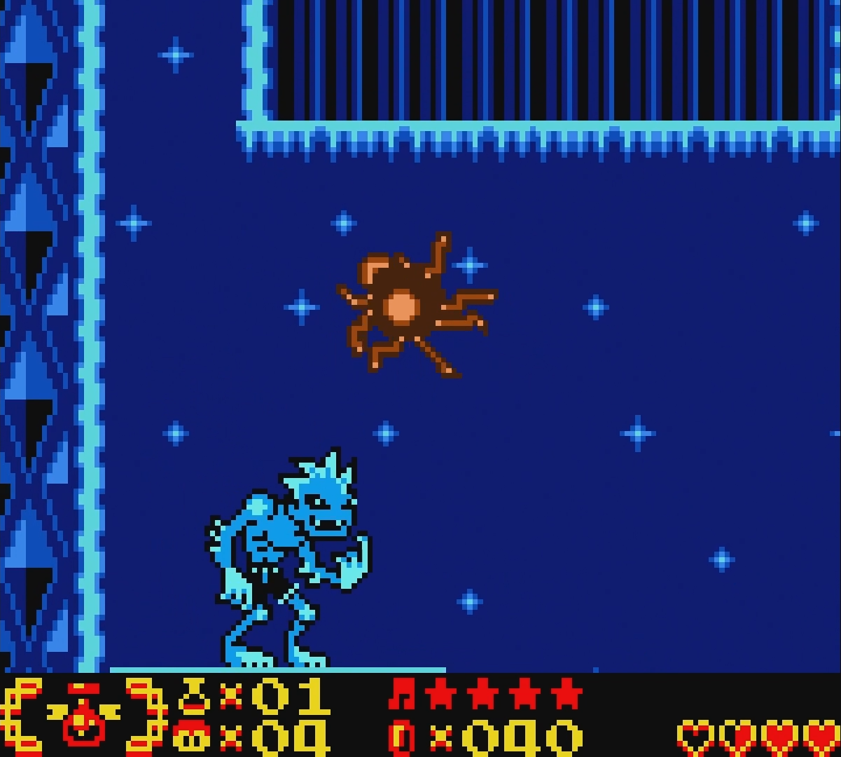 At this point it’s difficult for me to not immediately compare the finer details of the game mechanics to more contemporary installments of the series. What was incredibly surprising when I first booted up the original Shantae, was just how solid of a foundation the rest is based upon. Much like the other games, your primary means of attack is the hair whip, which has a much shorter range in this game. Alongside the hair whip you also have access to consumable spells, which can be bought at the item stores in the various towns scattered across the island. What’s neat is that each town specializes in certain items, so while most items, like healing pots, are available in other shops, they’ll be cheaper or more expensive based on where you shop. Along your journey you’ll unlock four transformations; the monkey, the elephant, the spider and the bird. To transform into these forms you go into the dance mode, which at first is just a repeating loop of four beats. At the start of each beat you can press a button, which changes the type of move you do and the music that plays. It makes the transforming dance a rhythmic mini-game that might be a tad rough to get used to at first. For instance, to transform into the monkey you press down, then left, on the d-pad. However, if you miss the beat you have to wait until the next one. If you’re feeling adventurous you can go on a quest to find baby squid to give to the warp squids of each town, which grants you a warp dance to fast travel to that given town. These are much more complicated sequences, but feel incredibly rewarding to hit just right. In similar fashion to Castlevania: Simon’s Quest for the NES, Shantae has a day and night cycle. Travelling during the night is significantly more challenging, with enemies getting substantially stronger and certain shops closing. While it is manageable, certain areas will be incredibly dangerous to explore during nighttime and I found myself frequently waiting for the sweet relief of daylight to make the journey less scary.