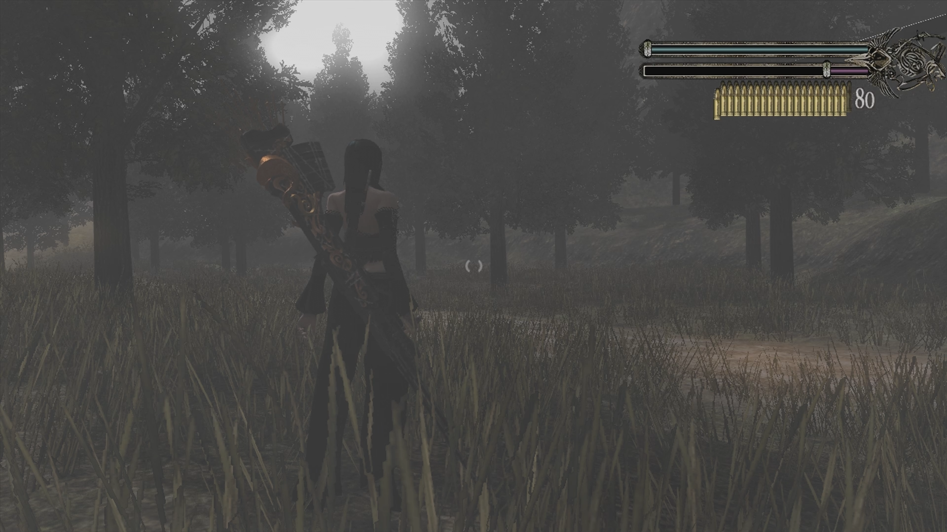 Bullet Witch is in a very interesting position between console generations. A lot of its original concept is intact, but there are elements of Cavia using the newer hardware for more detailed environments and character models. It is, however, wildly inconsistent in how it applies this. Alicia often stands out among the barren villages comprised of the same four houses and this goes for the city landscape as well. It’s not detrimental to the experience, but it is very noticeable. Despite the problems the game has in its pacing, narrative delivery and visual consistency, it does have that oh so delicious Cavia feel to it. I really like the concept for the story and the way it tries to execute on that concept, the key word being ‘tries’. Most of the story is a bit haphazardly sprinkled throughout the handful of cutscenes and interactions, and is mostly relegated to bits of unlockable data entries. I have a deeply rooted love for the slightly clunky, unpolished, but incredibly unique feeling that games like this bring to the table. I started this playthrough with a few mocking jabs, and quickly started having a great time shooting demons and doing backflips whilst homing in lightning strikes on a unit of tanks. It’s fantastically over the top and does a proper attempt at telling an interesting story. I will say, though, that each boss battle felt like a chaotic nightmare to go through. The camera actively works against you at the best of times, and the health bars of the bosses deliver on a multiple hour long experience of walking to the other side of an arena to shoot their indicated weak spots, at the worst of times. Bullet Witch is, at its heart, a solid attempt at a great third person shooter, but sadly falls more than a bit short of reaching the finish line. It might have something to do with the short development time and the unfamiliarity with the hardware, or stubbornly latching onto the original concepts without any compromise. Maybe with a little bit more time in the oven the developers at Cavia could’ve really baked a delicious cake out of Bullet Witch. The foundation is there, but it plays its cards too close to its chest, and ends up with one foot firmly planted in both platforms.