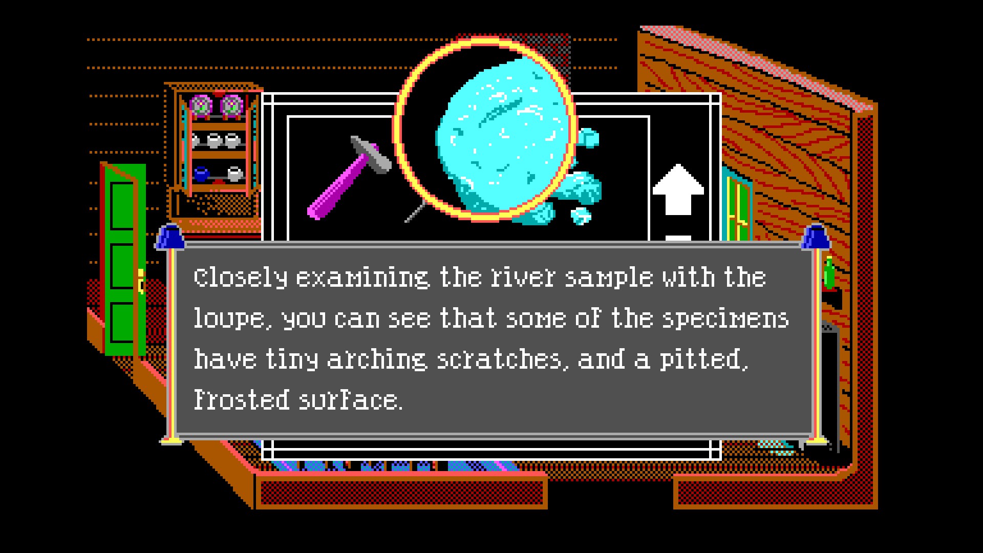 When I first started playing the game, I honestly felt a bit out of my depth. I found myself wandering around the lodge typing “Open Door” at everything that I could to see what was behind it. Slowly, but surely, I started to figure out how to interact with the game and how to ‘think’ in the way that it intends. As I slowly started to put the pieces together in the opening chapter of the game, I discovered a freedom I rarely experienced with games, and it became incredibly immersive. At times it really felt like I was right there investigating the mystery alongside Nancy. The mystery itself felt engaging as well. The unique angle of using minerology as a base for a lot of the puzzle work gives the game an oddly specific twist that makes it endearing. As is tradition with this particular genre, it does have a few points where the classic point and click moon logic comes into play. Those type of puzzles that have you scratching the back of your head and have you frantically clicking across the screen hoping to find a solution, or in this case, typing whatever comes to mind. During these two segments involving cookies and balls, I started thinking through the text prompts and just jotting down whatever comes to mind. Though the game telling me that I can’t think did get a good chuckle out of me.