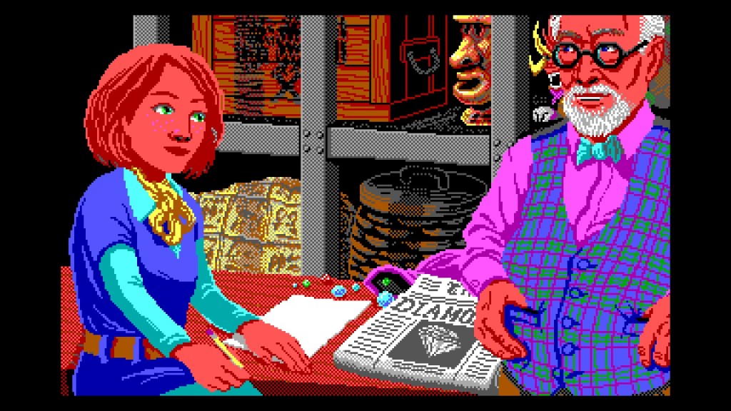 Part of that is not only looking at the old games, and learning about the things I liked and didn’t like, but also playing newer adventure games. There’s the notebook in the game that tracks your progress, and I got that idea from Thimbleweed Park. Sometimes you have to step away from a game, and then you come back and don’t remember where you left off. That can be a very real barrier to picking up the game again. I really loved that Thimbleweed Park had something like that available and I wanted to have that for my game too.