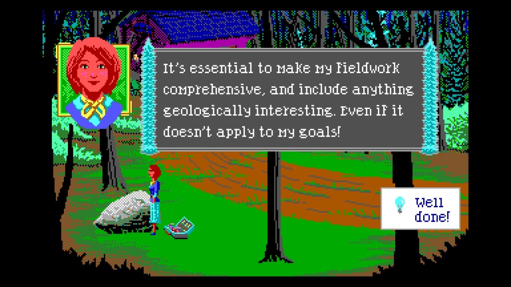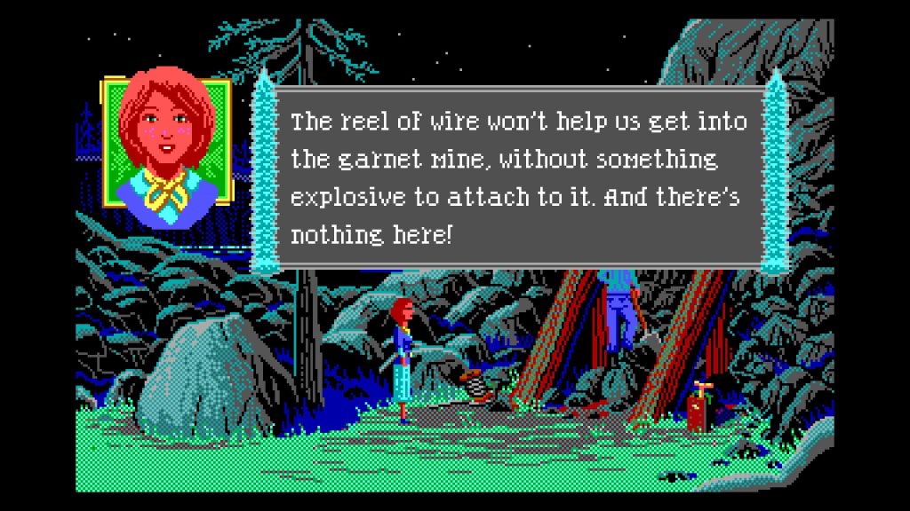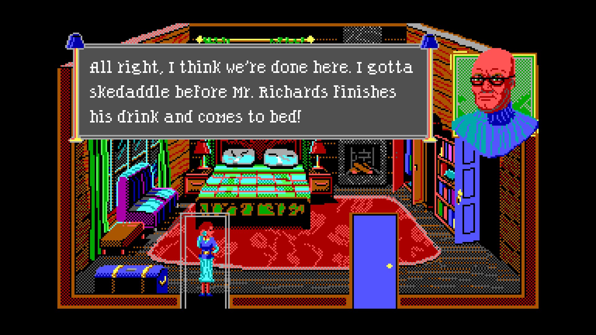 Julia: Absolutely! The things you just mentioned were at the top of my mind. I didn’t want there to be softlocks, where you could progress in the game and then get stuck in a place, not knowing that you’re even stuck. Just because you forgot to do something in one of the previous chapters or previous stages of the game. I really didn’t want that to happen. I didn’t want you to be able to die very easily either. Some people do love that about Sierra games, but I was always terrified as a kid by how easily you could die in those games. I remember not enjoying them back then. I also stream on Twitch, and part of my stream is that near the end we play a retro EGA game. It’s been a good way to not only remind myself of some of the stuff that I didn’t particularly care for, but also to play new games. Well, they’re not new games. They’re still 30+-year-old games, but they’re new to me. Either way, I get to discover and take the time to actually play through games that I’ve never played before, or wouldn’t have back then. I get to experience what they did that I loved about those games, but also see what I don’t want to necessarily incorporate into my own game. For instance, something like a limited inventory system, in an adventure game no less. That’s kind of a brutal limitation, that probably was a case of, maybe, a technical limitation. It’s something we don’t have to worry about these days, and it’s not something that I wanted to build into my game.