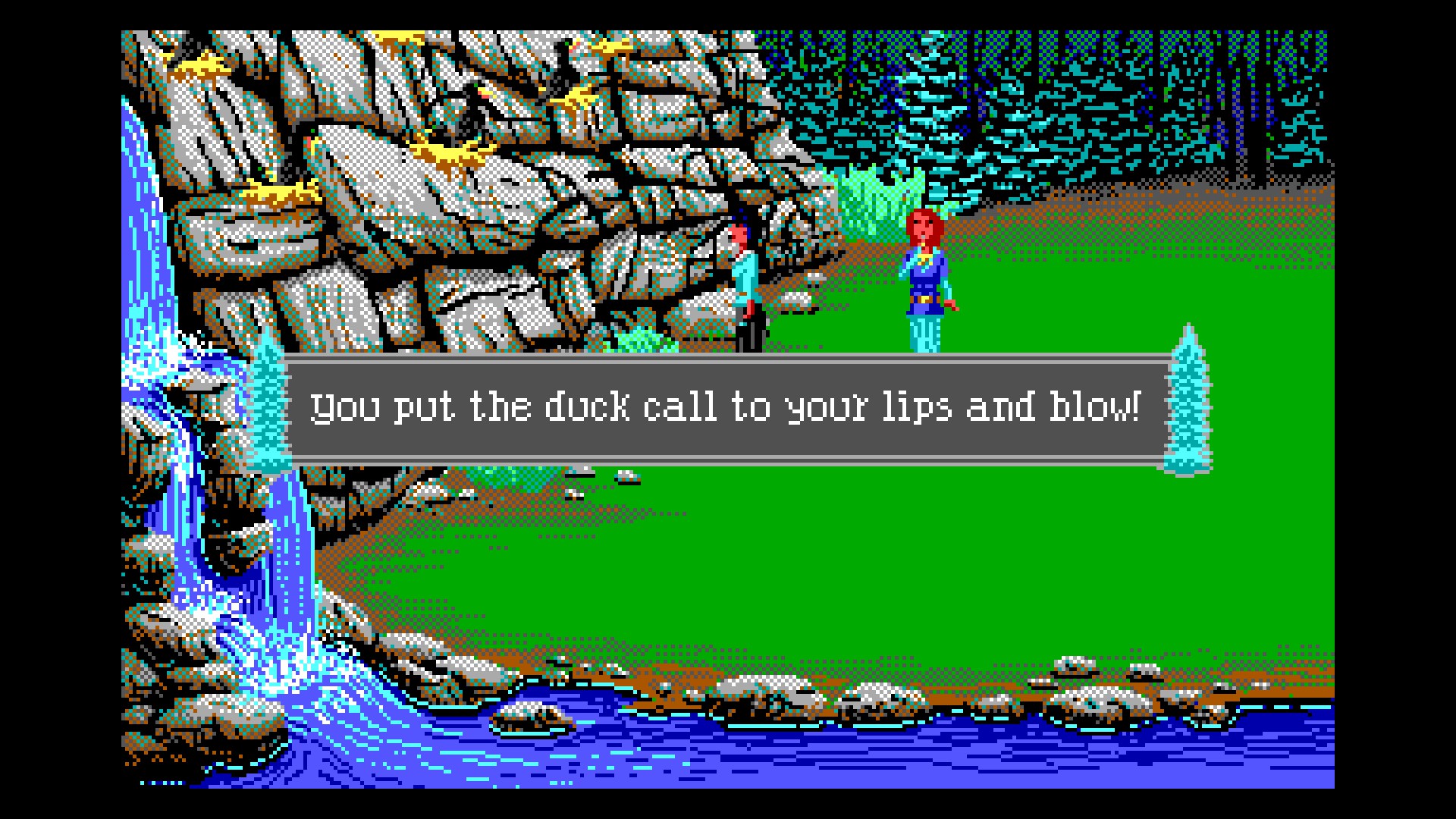 Julia: At the time when graphical text parser games were around, and when games moved on to the more point and click interface, there was this idea that we’ve advanced beyond the text parser. Now we have an improvement beyond the text parser. And in certain ways it is, because the point and click interface is easier to port to other platforms and consoles. The usability is definitely a lot easier, but I myself would never say that the point and click interface is an improvement over the text parser. Just speaking of the overall enjoyment you can get out of a text parser, I think, offers something different than point and click does. I think that they’re both very valid ways of interacting with a game, but in the same way that I don’t think VGA was an improvement over EGA. It’s just a different style of making the artwork, but at the time it was considered an improvement, because now we have more colors so therefore it must be better. I don’t necessarily feel that way.