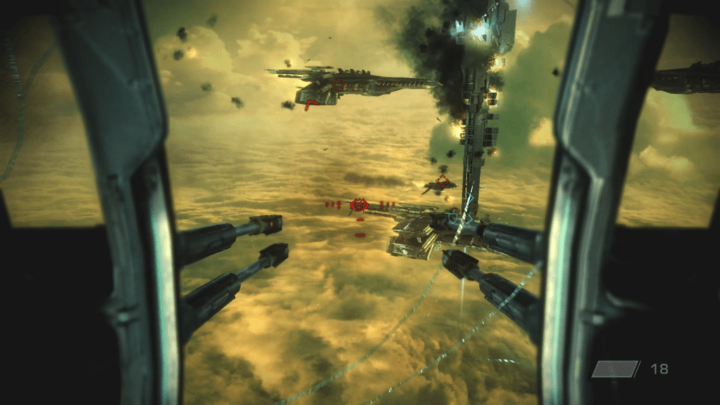 Killzone 2 kicks off right as the ISA forces are about to make landfall on Helghan. As the fleet, under command of Jan Templar on the ship, The New Sun, approaches orbit, they bombard the capital city of Phyrrus. For this game we play as Tomas “Sev” Sevchenko, alongside Rico Valesquez from the prior games. As Alpha Squad, under command of Dante Garza, prepares to make landfall, the fleet is nearly destroyed by a network of arc towers hidden beneath the city. Through the destruction, the transporter carrying Alpha Squad, makes it to solid ground, where they find the Helghast ready for their arrival.