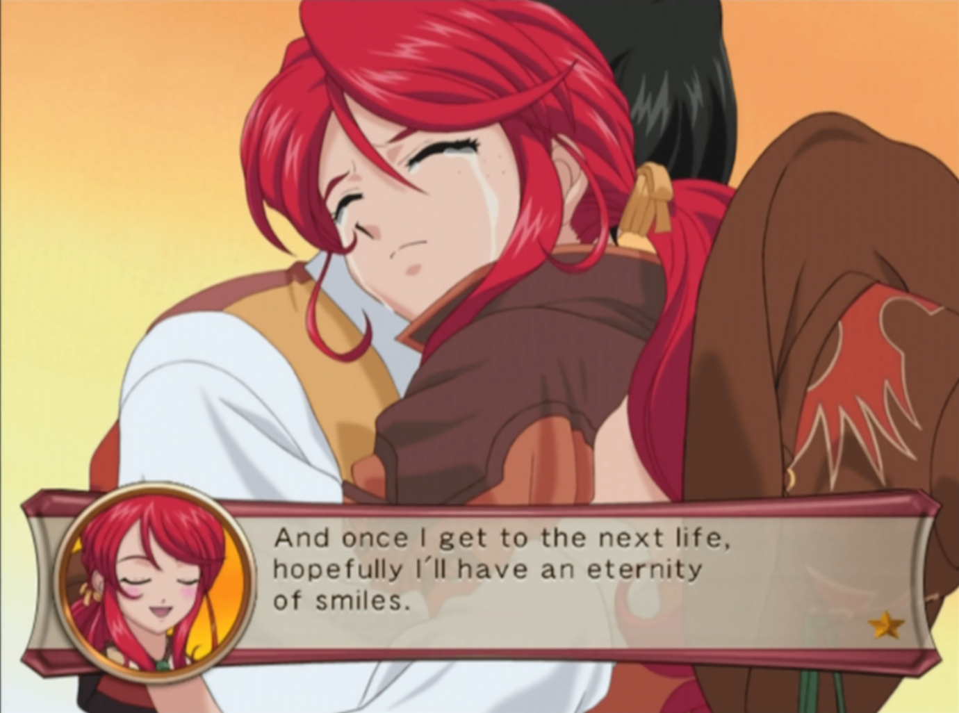 This fear completely paralyzes her during her first battle against the demons. A mistake she makes causes the rest of the revue to nearly lose their life in the fight. The gang narrowly manages to get away, but the lasting impact of the trauma caused by her fathers death is palpable throughout this sequence. After the battle she completely resigns to the idea that it would be best if she left everyone alone, because her failure could mean their deaths. The scene that follows between Shinjiro breaking through the walls of Rika’s trauma, causing her to open up is incredibly well paced and written. It’s arguably one of the strongest parts of the game. Afterwards Shinji brings Rika back to the theatre, where a worried revue embraces her. I appreciate that the game doesn’t consider her problems solved, instead uses the caring nature of the rest of the cast to help her push forward.