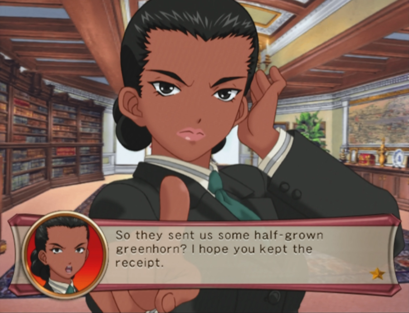 The second chapter starts us off with Sagitta’s involvement in a plot to overthrow Harlem for a company that is looking to turn it into a gentrified timeshare neighborhood. The first 100 people to sign up get $5000! This leads to a mock court battle that plays out like a parody of an Ace Attorney episode. This would be funny in and of itself, but the game goes out of its way to have the company Sagitta works for commit mass manslaughter by leveling a sizable chunk of Harlem, inhabitants included.